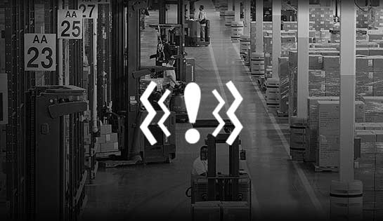 + Program a forklift impact alarm to sound or reduce vehicle speed upon impact