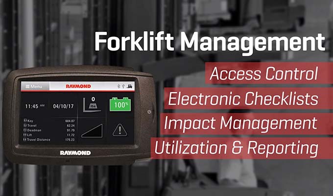 A new fully integrated, 7" Multifunction Color Touchscreen Display is available on select Raymond forklifts.